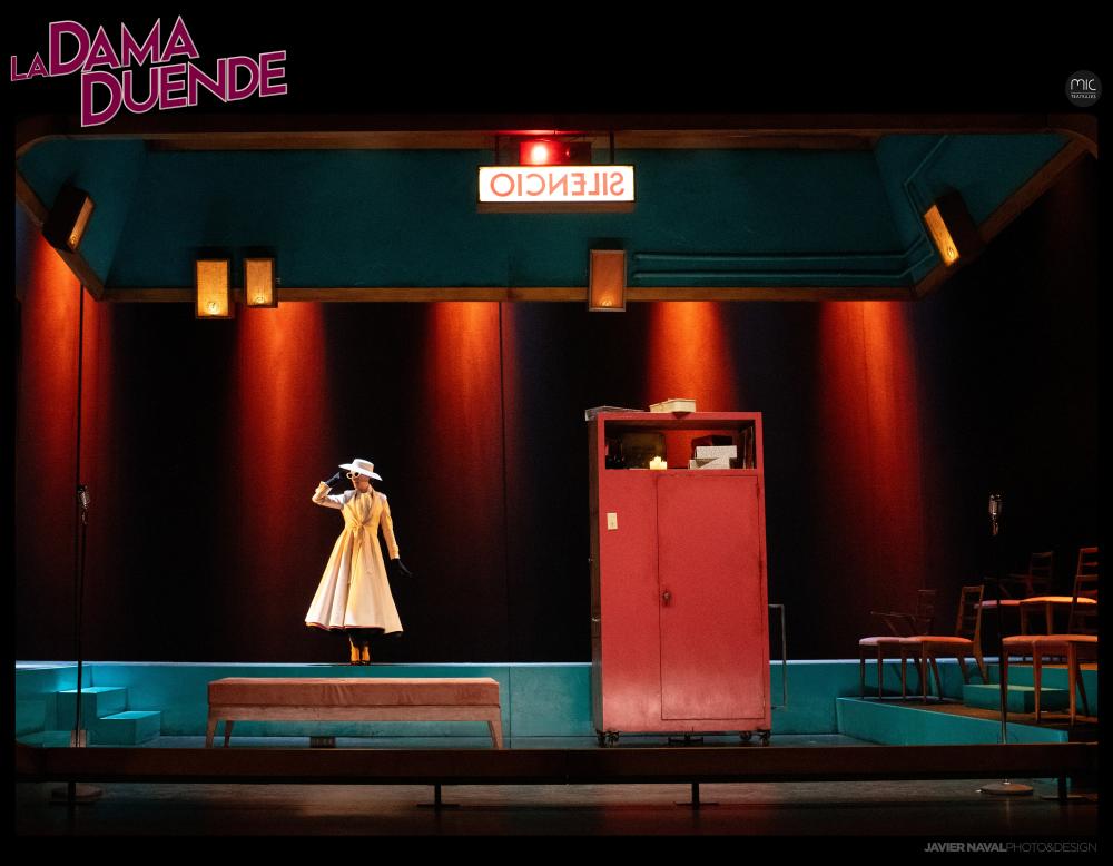 Esta versión del famoso clásico del teatro del Siglo de Oro “La dama duende”, salido originariamente de la pluma del dramaturgo Pedro Calderón de la Barca, es la historia de una mujer encerrada en un piso, donde gran parte de la acción se desarrolla a oscuras (para mayor escalofrío del pobre Cosme) y donde una alacena conduce a una estancia secreta, vacía, desde donde se puede presenciar la trama como un fantasma, como un duende y poder presentarse como una aparecida. Enseguida llegamos al Madrid de mediados del siglo XX, con el recién nacido EL CASO, donde proliferaban asesinatos y misterios sin resolver, a la calle Fuencarral y sus hileras de pisos mal iluminados, a la literatura de aparecidas y sacamantecas, de historias publicadas en gacetas de la tarde, en escalofriantes historias oídas alrededor del aparato de radio... En 1942 La Sociedad Española de Radiodifusión pone en marcha la Compañía de Teatro en el Aire de Radio Madrid. Suena un disco en el estudio, encendemos el aparato, primero unos comerciales en directo y pronto llegamos al Reino de las Voces.