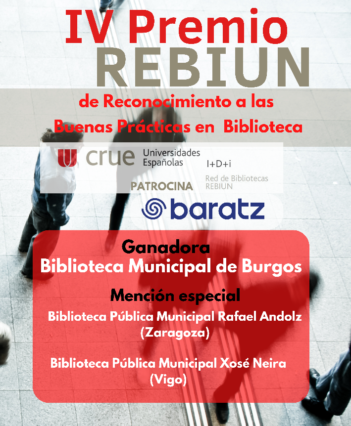 El esfuerzo y el trabajo extra que suponen todas las fases de desarrollo del proyecto, y el recorrido a largo plazo del mismo han sido decisivos para hacer a la Biblioteca Municipal de Burgos merecedora del IV Premio de "Reconocimiento a las Buenas Prácticas en la Biblioteca" concedido por la Red de Bibliotecas Universitarias de España (REBIUN).
