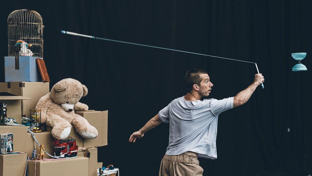 Luichi Leal (diábolo con luz) es un malabarista cuya vida lleva girando alrededor del diábolo desde hace más de dos decenios. Prácticamente autodidacto en cuanto al diábolo, comenzó a aprender sobre otros campos del malabarismo a través de la asociación Nuevo Circo en Córdoba, su ciudad natal. Más tarde se formó en distintas disciplinas circenses en la escuela CAU de Granada. Al terminar la escuela, viajó a Japón para trabajar durante un año en Shima Supein Mura. A la vuelta de Japón, se asentó en Murcia, donde ha trabajado como formador de circo socioeducativo y como artista en distintas propuestas desde La Chimenea Escénica, donde crea sus primeros números tanto individuales como grupales, lo que le lleva a trabajar en los principales teatros de la región. En los últimos años del pasado decenio trabajó también en Francia y Arabia Saudí. En 2021 se trasladó a Madrid, lugar donde ha colaborado como malabarista en distintas compañías y espectáculos, actividad combinada con su faceta de formador de circo.