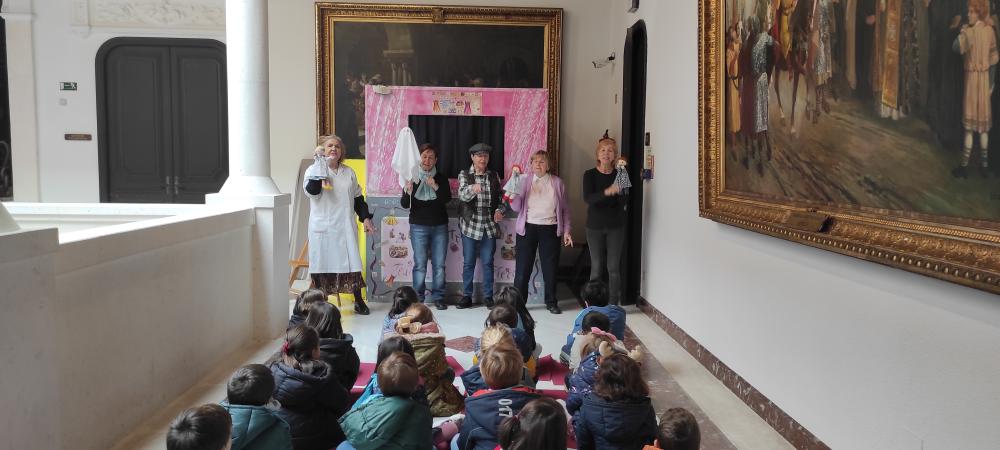 El grupo de títeres de las Aulas de Personas Mayores María Zambrano desarrolla esta actividad educativa en el Archivo Municipal de Burgos.