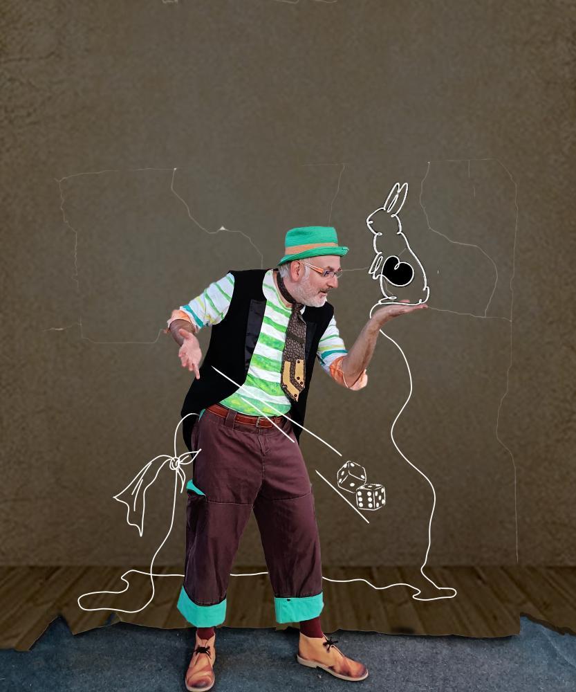 Número de ilusionismo con magia cómica y sketches clown para público familiar . Espectáculo excéntrico , desde la magia, el humor y lo inesperado. Conoce al perro Chanclas, al Señor Globo y busca las piruletas desaparecidas junto a Tritón.