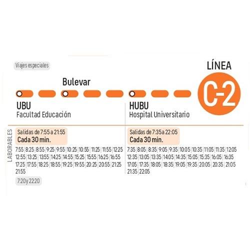 Línea 22 C2: Circular (sentido antihorario): F. Politécnica - Bulevar - HUBU - Cementerio - F. Politécnica. Itinerario Icono Mapa Consulta el Itinerario en Directo Horario Documentos LINEA_C-2.pdf (pdf 29 kB)