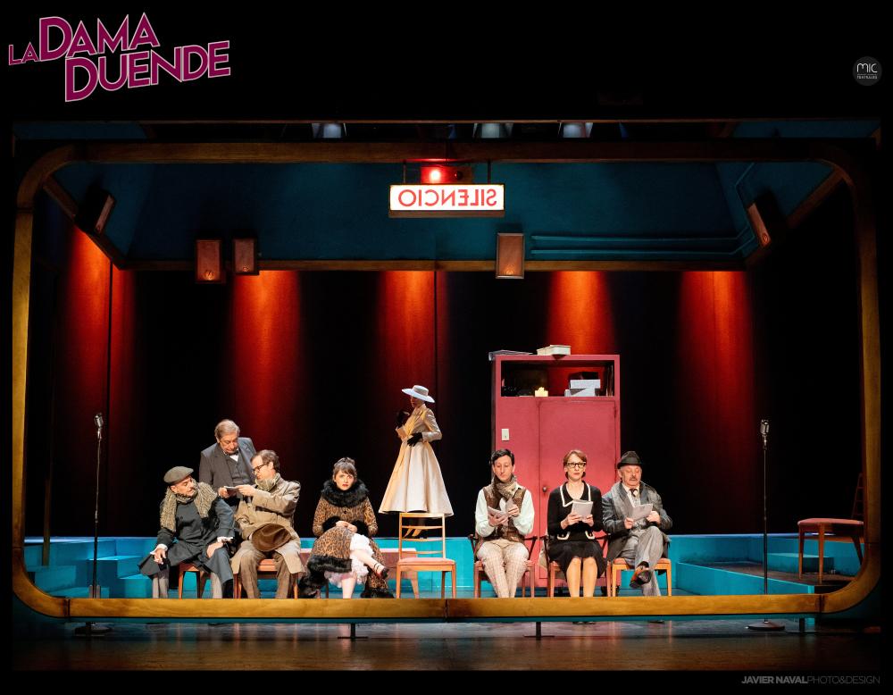 Esta versión del famoso clásico del teatro del Siglo de Oro “La dama duende”, salido originariamente de la pluma del dramaturgo Pedro Calderón de la Barca, es la historia de una mujer encerrada en un piso, donde gran parte de la acción se desarrolla a oscuras (para mayor escalofrío del pobre Cosme) y donde una alacena conduce a una estancia secreta, vacía, desde donde se puede presenciar la trama como un fantasma, como un duende y poder presentarse como una aparecida. Enseguida llegamos al Madrid de mediados del siglo XX, con el recién nacido EL CASO, donde proliferaban asesinatos y misterios sin resolver, a la calle Fuencarral y sus hileras de pisos mal iluminados, a la literatura de aparecidas y sacamantecas, de historias publicadas en gacetas de la tarde, en escalofriantes historias oídas alrededor del aparato de radio... En 1942 La Sociedad Española de Radiodifusión pone en marcha la Compañía de Teatro en el Aire de Radio Madrid. Suena un disco en el estudio, encendemos el aparato, primero unos comerciales en directo y pronto llegamos al Reino de las Voces.