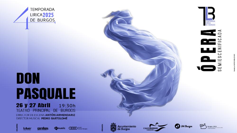 Sábado 26 y domingo 27 de abril de 2025. 19:30 h. ÓPERA (versión semiescenificada). “Don Pasquale” (Música: Gaetano Donizetti. Libreto: Giovanni Ruffini y Gaetano Donizetti). Joven Orquesta Sinfónica de Burgos. Dirección de escena: Antón Armendáriz. Dirección musical: Pedro Bartolomé Arce.