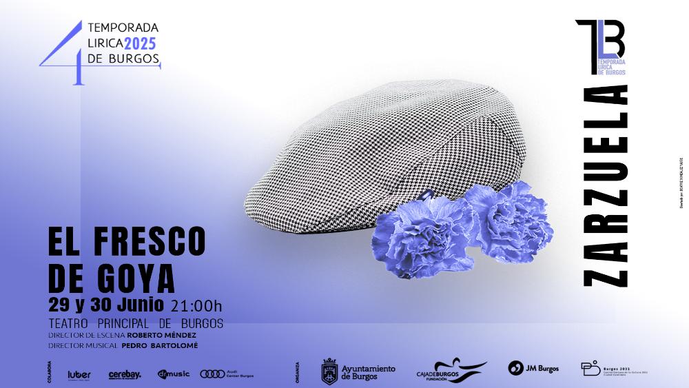 Domingo 29 y lunes 30 de junio de 2025. 21:00 h. ZARZUELA. “El fresco de Goya” (Música: Joaquín Valverde Sanjuán y Enrique García Álvarez. Libreto: Carlos Arniches y Antonio Domínguez). Joven Orquesta Sinfónica de Burgos. Schola Cantorum de Burgos (directora: Mª José Barrio Morquecho). Dirección de escena: Roberto Méndez. Dirección musical: Pedro Bartolomé Arce.