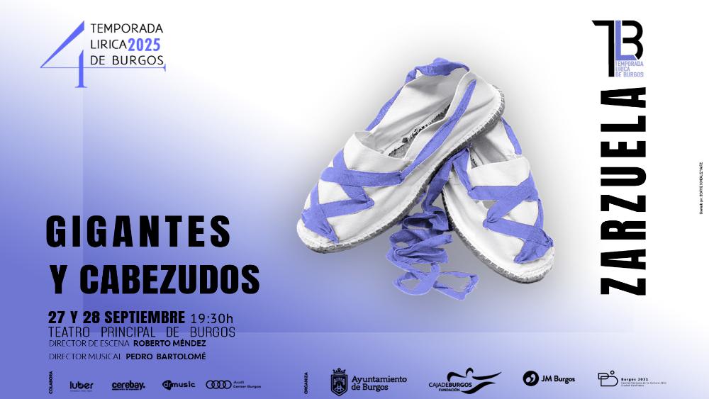 Sábado 27 y domingo 28 de septiembre de 2025. 19:30 h. ZARZUELA. “Gigantes y cabezudos” (Música: Manuel Fernández Caballero. Libreto: Miguel Echegaray). Joven Orquesta Sinfónica de Burgos. Orfeón Burgalés (directora: Marta Pilar Hernando). Dirección de escena: Roberto Méndez. Dirección musical: Pedro Bartolomé Arce.