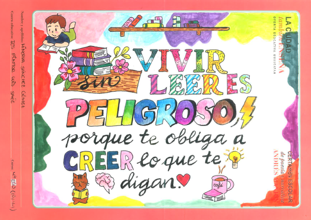 El Certamen Escolar de poesía y narrativa "Andrés Manjón" cumple en el presente curso escolar 46 años. En esta edición se retó a los participantes a crear artísticamente un eslogan de fomento de la lectura utilizando "lettering".